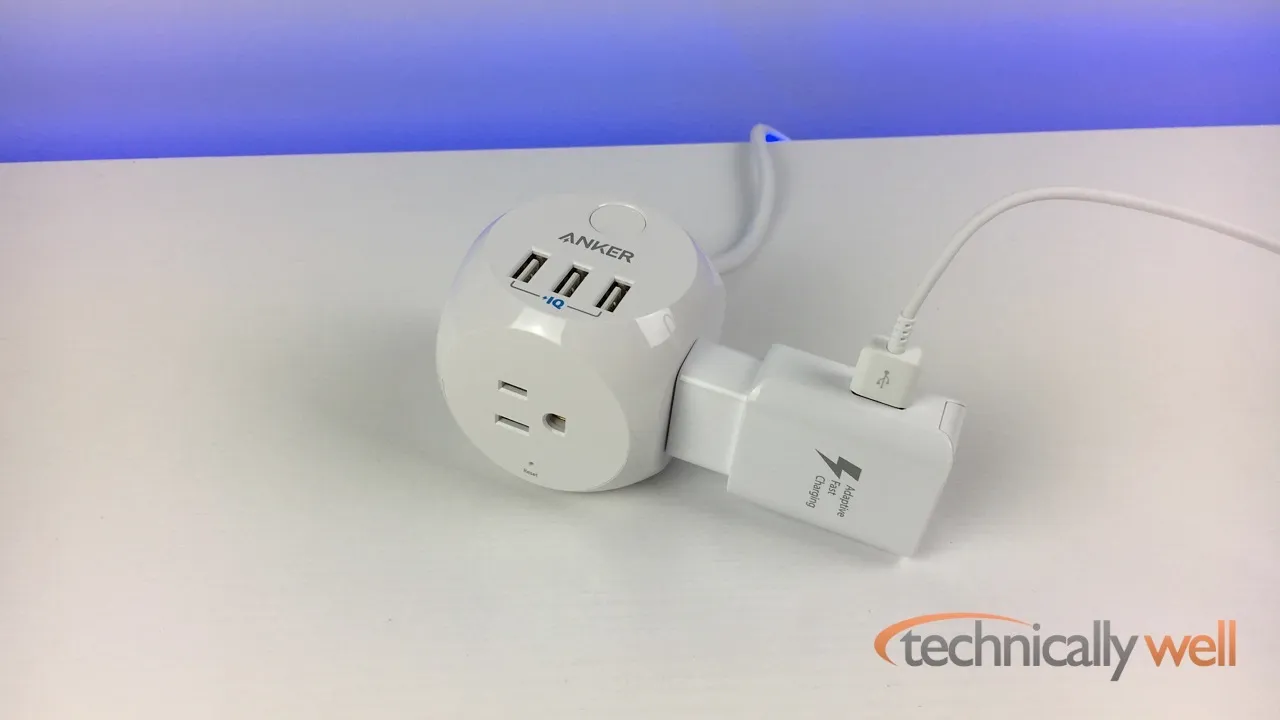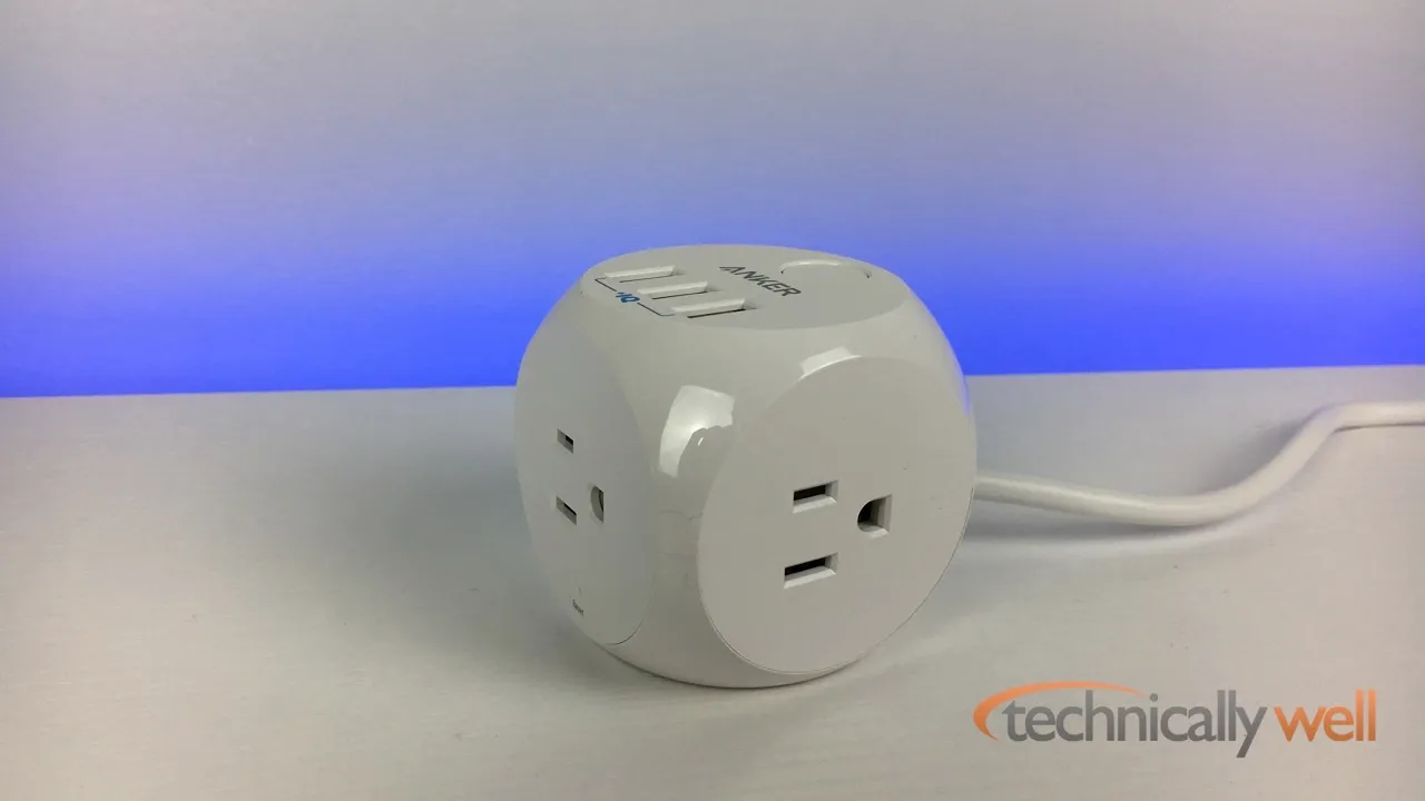 The cube design of the PowerPort Cube gives you three side of 3-prong AC outlets and one side of 3 USB ports. The PowerIQ-enabled USB ports can charge virtually all smartphones and tablets, but the lack of Quick Charge and Power Delivery technology may mean your device charges at a slower speed.