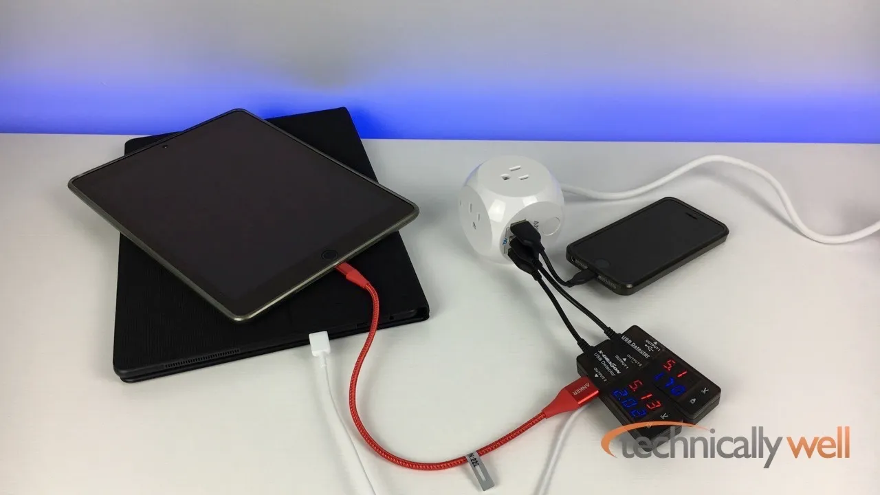 I put the USB ports to the test by connecting two tablets and and an iPhone. According to the manual, the PowerPort Cube can distribute up to 3.6 amps between the 3 ports.