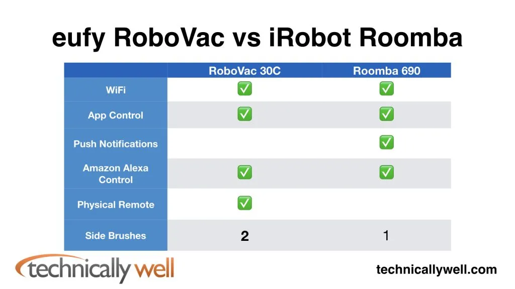 RoboVac 30C vs Roomba 690 Feature Comparison