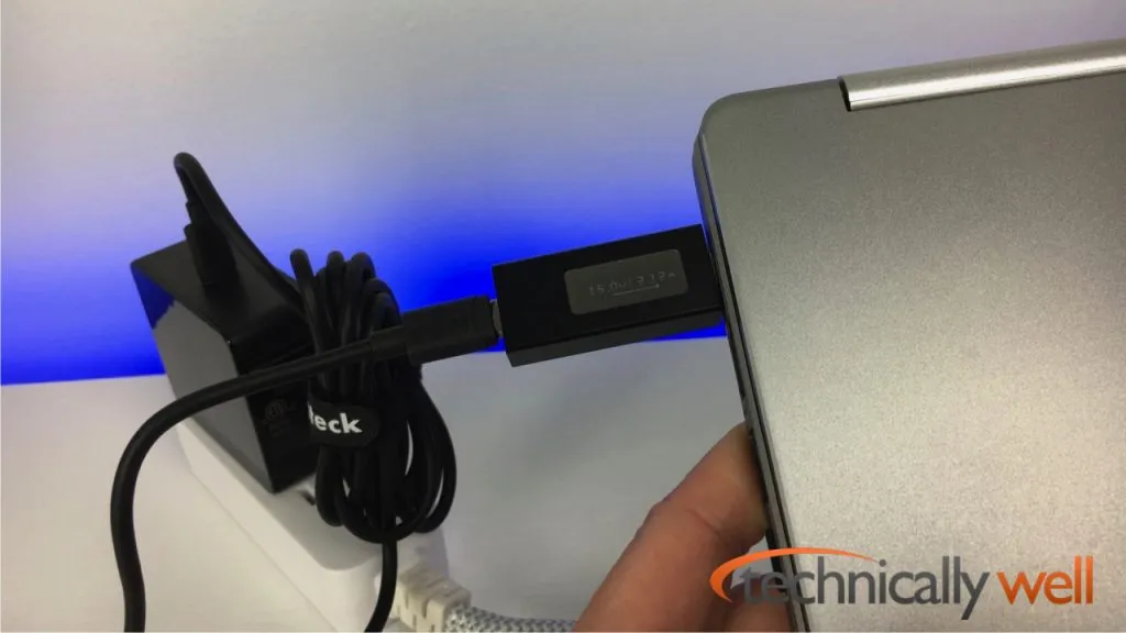 Next up was the Acer R13 Chromebook and it charged along happily at 15V 2A without a problem. I was surprised by this because it has refused to charge with other USB-C Power Delivery chargers I’ve tested.