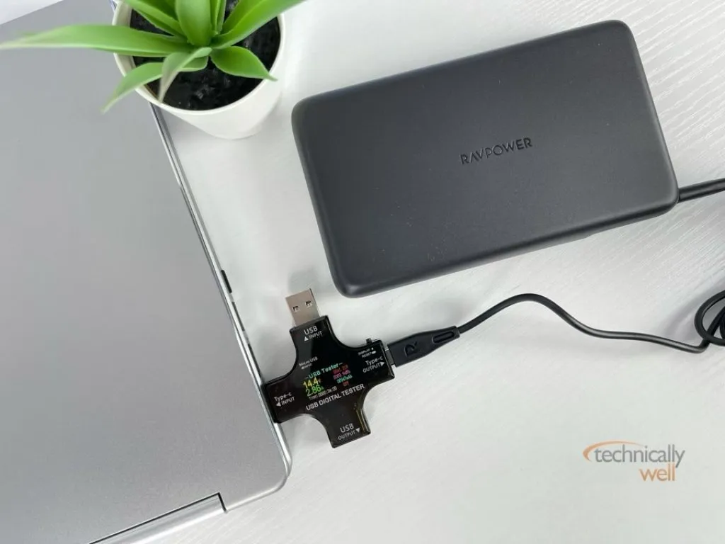 RAVPower’s PD power bank supports the Dell Chromebook’s 20V charging profile, allowing it to charge at full speed.