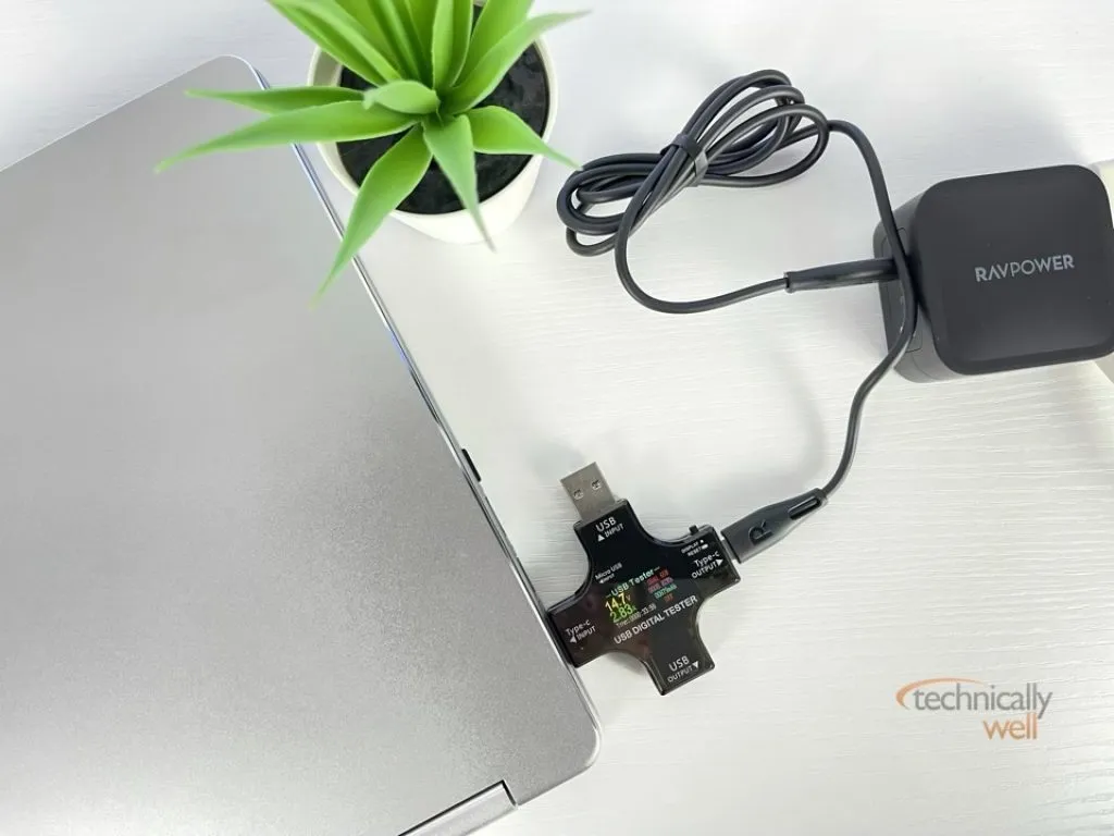 The Acer R13 Chromebook doesn’t officially support the Power Delivery standards, but the RAVPower PD wall charger was able to support its 15V and 45 watt profile.