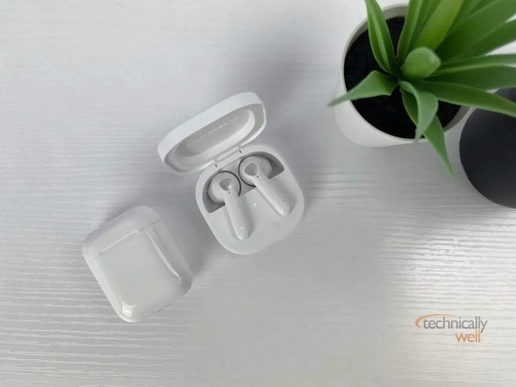 The charging case is just a smidge larger than the Apple AirPods, but it is still pocket-friendly. A magnet helps hold the earbuds in place while they’re in the case.